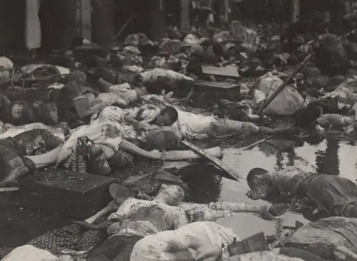 9. Мирные жители погибшие в результате налета японской авиации на Шанхай. Китай, 1937 год