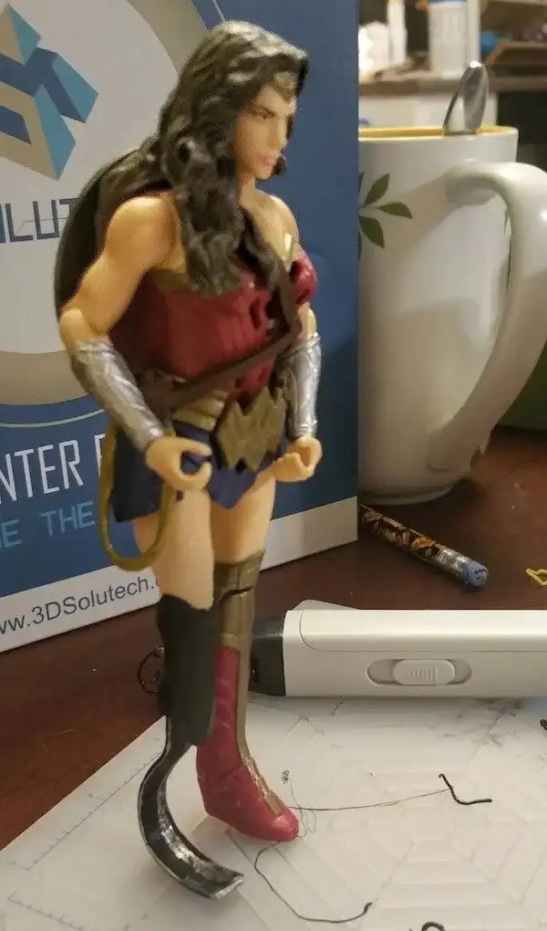 2. "Нога у игрушки моего ребёнка отломилась, поэтому я сделал ей протез с помощью 3D-ручки и куска металла"
