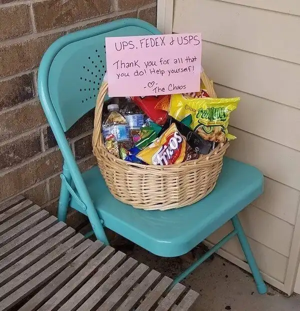 10. "Моя подруга оставляет на крыльце угощение для курьеров служб доставки"