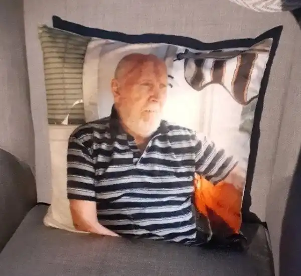 8. "Моя бабушка так скучала по дедушке, что сделала себе подушку с его фотографией. Он был домоседом"