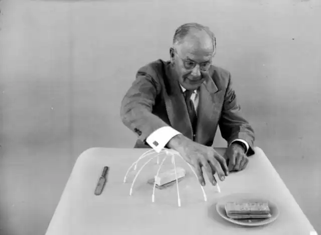 Английский комик Эрик Сайкс разработал «станок для массового бритья», который одновременно может брить 12 мужчин