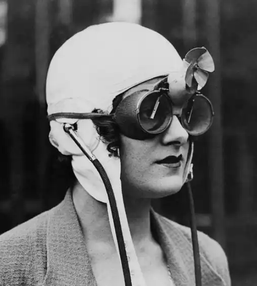 Женщина в «электрической ванне», которая предназначалась для светотерапии. Это устройство является предшественником современного солярия