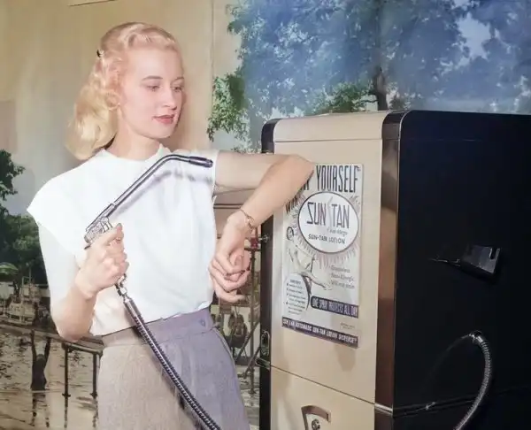 С помощью этого автомата человек за 30 секунд мог распылить на свое тело специальный аэрозоль, чтобы кожа выглядела загорелой
