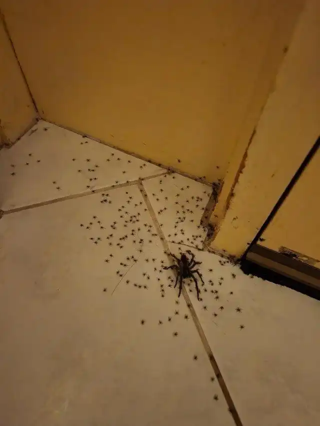 5. "Вот что бывает, когда брызгаешь на паука инсектицидом и все детки сбегают с его спины"