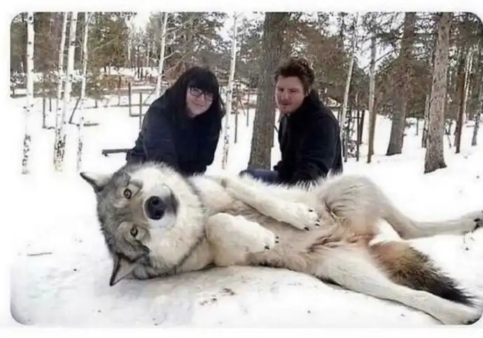 "Сегодня мы с бойфрендом были в волчьем питомнике. Этот милашка особенно любит, когда ему чешут пузо"