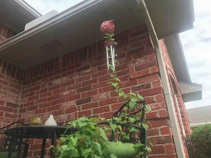 Эта лоза забралась на стул, чтобы заглушить звон "ловушки для ветра"