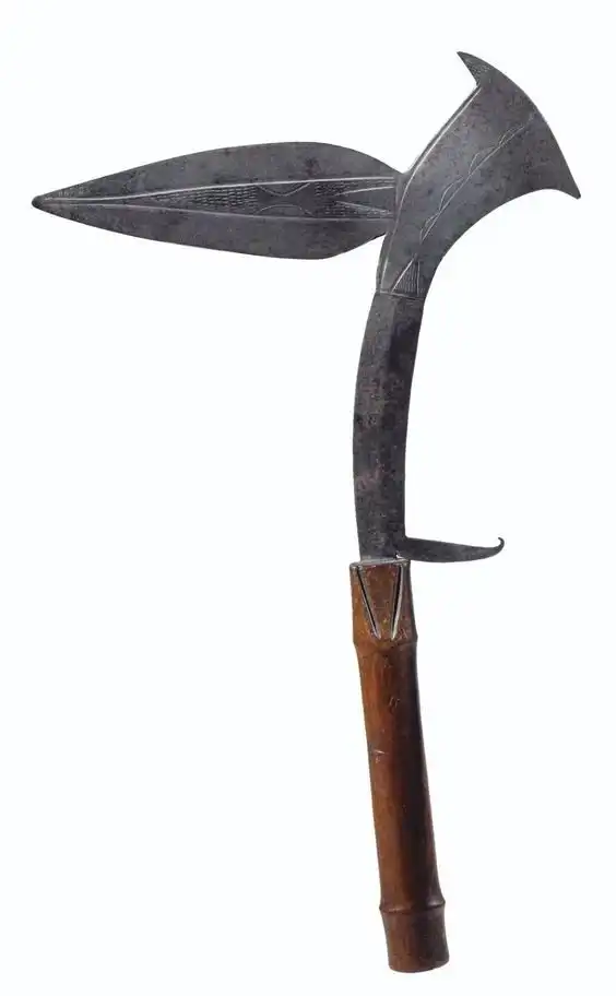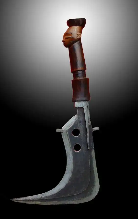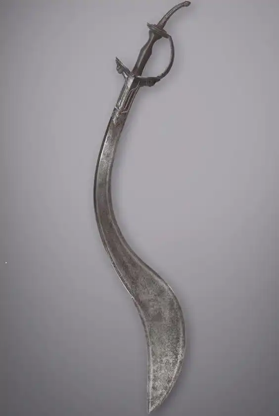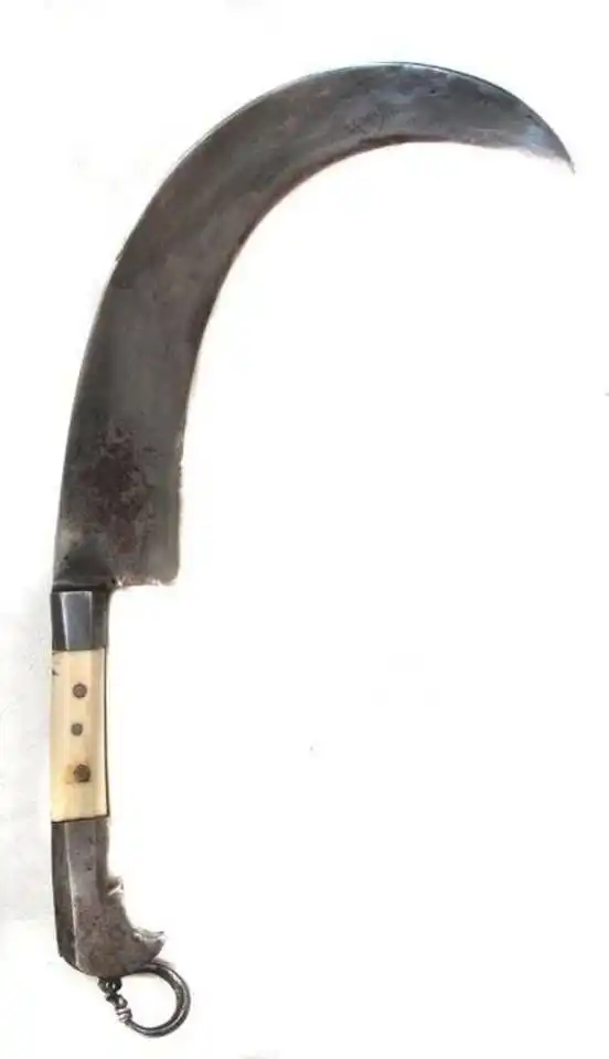 Индийский серповидный кинжал, конец 18 - начало 19 века, с гранеными стальными креплениями и слоновьими рукоятками