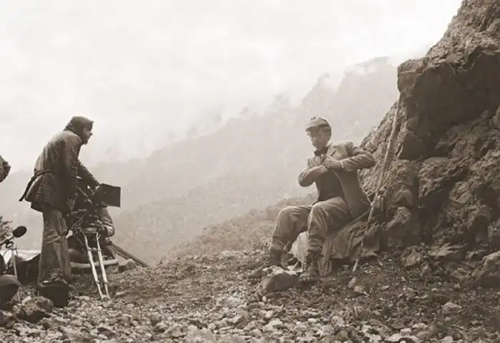 5. Василий Ливанов на съёмках сцены у Рейхенбахского водопада для фильма Приключения Шерлока Холмса и доктора Ватсона, 1980 год