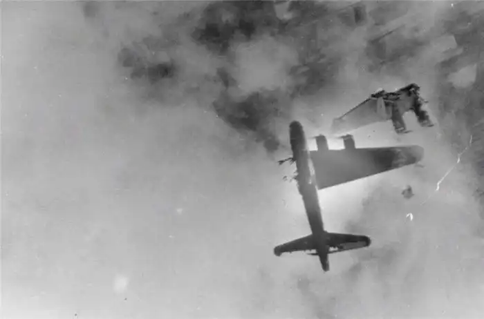 Снимки сделаны стрелком нижней "пулемётной сферы" с борта другого В-17, что летел выше. Из 10 членов экипажа чудом спаслись двое: пилот и хвостовой стрелок.