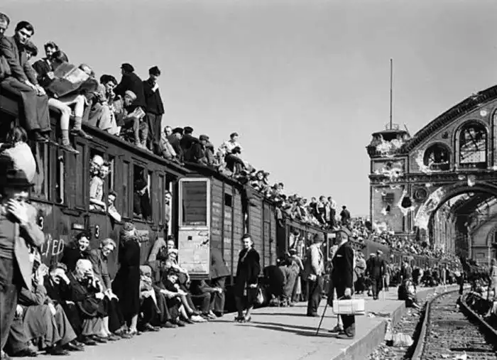 26. Беженцы покидают разрушенный Берлин. 1945 год