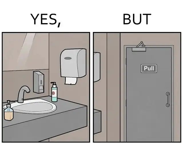 Мыло, антисептик и… дверь которую надо тянуть на себя
