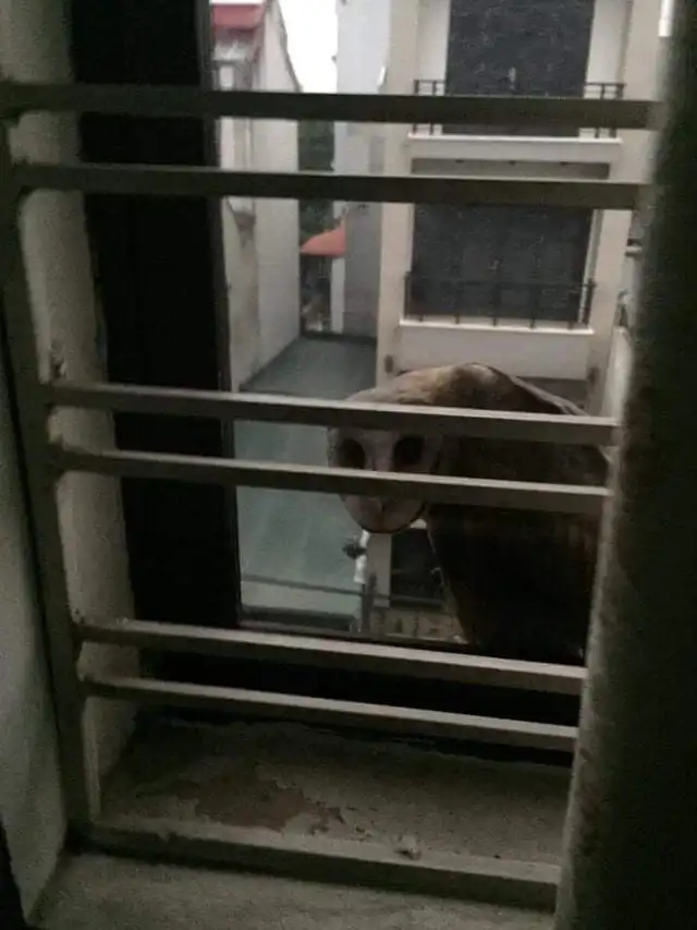 На самом деле этот пол выглядит пугающе.Просто сова за моим окном