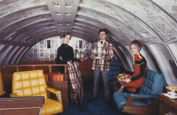 9. Верхний салон первого класса в Boeing 747 United Airlines, 1970 год