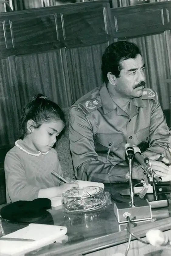 17. Саддам Хусейн на пресс-конференции с дочерью Халой, 1980-е годы