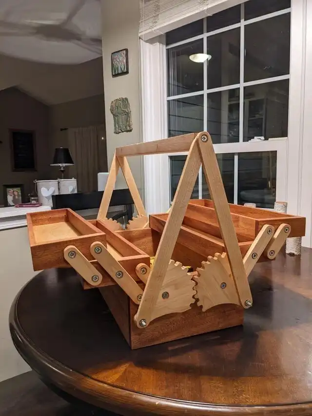 Я сделал набор инструментов, который открывается, когда вы ставите его и нажимаете на ручку, и закрывается, когда вы поднимаете его обратно