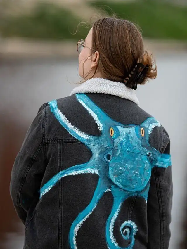 Я решила обновить свою джинсовую куртку, и нарисовала осьминога