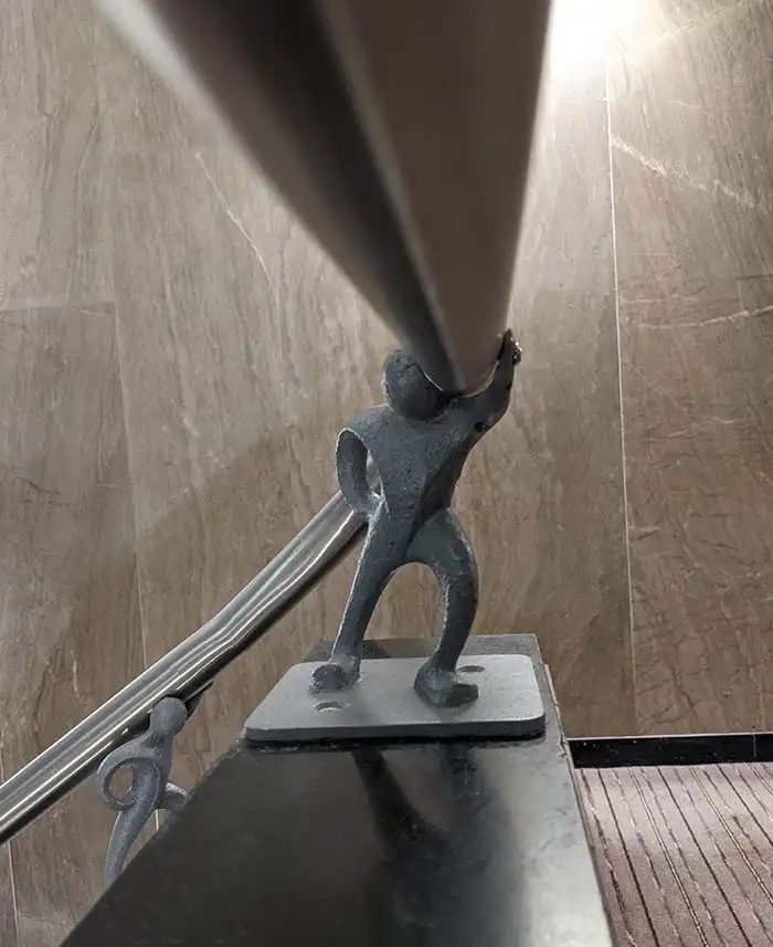 12. "В моем отеле перила держали маленькие металлические человечки"