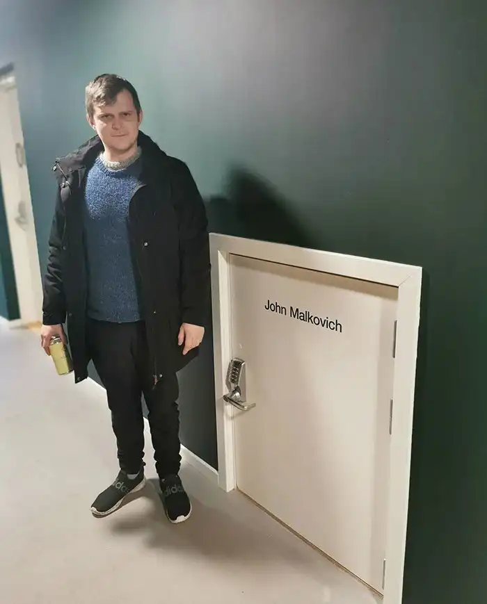 19. "В отеле, где я остановился, есть маленькая дверь, на которой написано «Джон Малкович»"