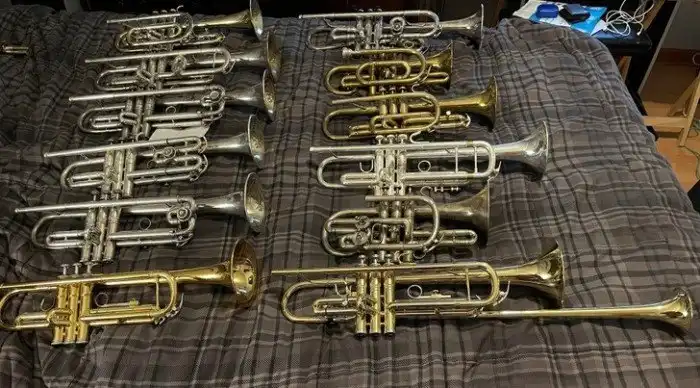 "А вот моя коллекция труб и корнетов. Некоторым из них не менее 100 лет"