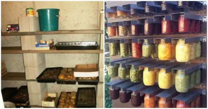 Обычно в подвалах, в зависимости от размера, используют стеллажи или старые коробки