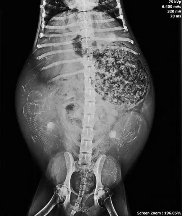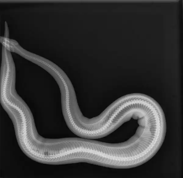 Рентгеновский снимок здоровой, но толстой змеи