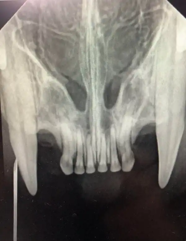 Рентгенограмма верхних резцов и клыков у кошки