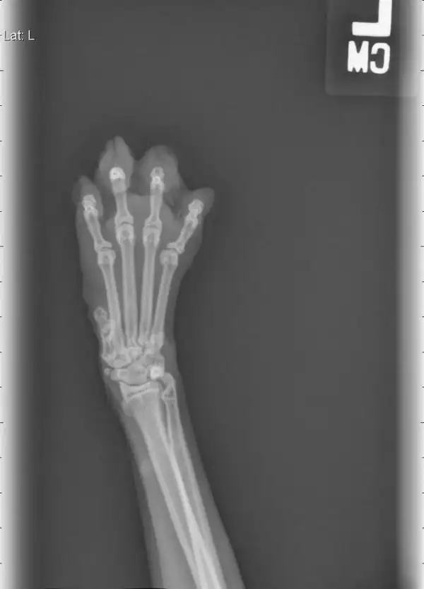 Снимок лапы моего кота после того, как он повредил пальчик