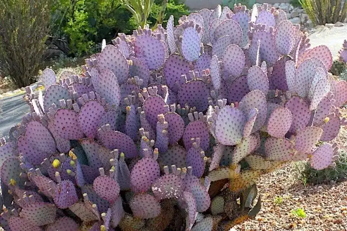 А вот еще один достойный представитель вида - Опунция Санта-Риты. Кактус растет фиолетовыми или синеватыми кустами.