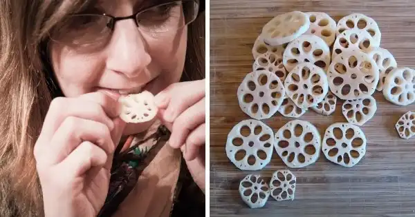 Корень лотоса считается деликатесом в Китае, Японии и Индии. В разрезанном виде напоминает кружева. Продукт может использоваться для приготовления горячих блюд, закусок и напитков. По вкусу напоминает корень сельдерея. По мнению азиатских целителей, лотос обладает невероятными целительными свойствами и способен возвращать красоту и молодость. Выращивают лотос на огромных плантациях. Растение достаточно капризно, поэтому производить продукт в промышленных масштабах непросто.