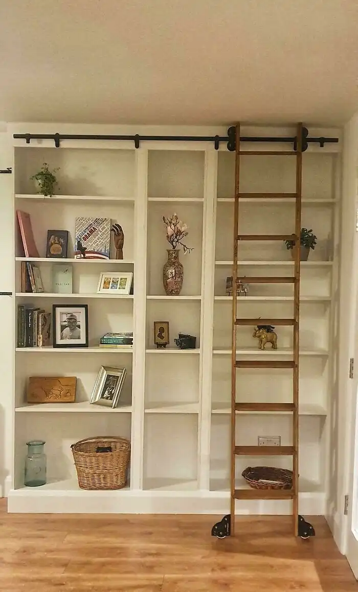15. "Книжный шкаф Billy с фасадом из фанеры, чтобы был похож на встроенный"