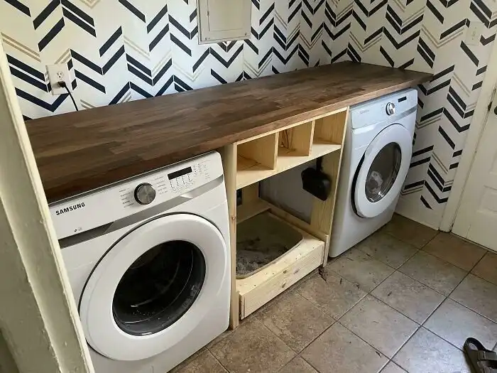 29. "Стойка для прачечной Karlby + изготовленная на заказ полка для обуви/ящик для кошачьего туалета"