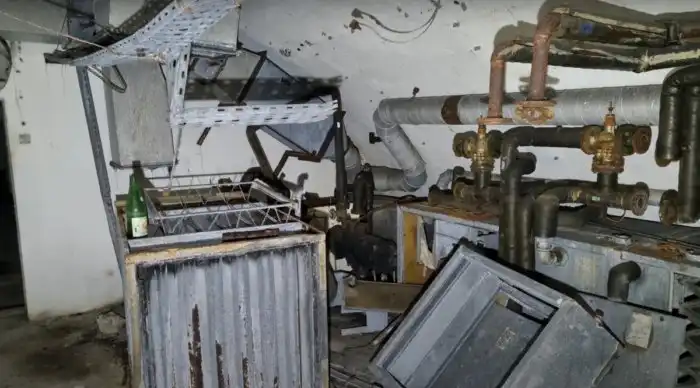 Отсюда забрали практически всë ценное, даже кабельную проводку. Странно, что латунные вентили на трубах оставили.