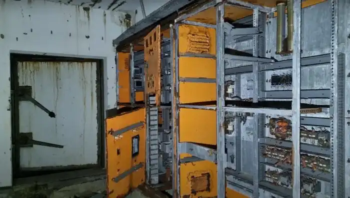 Шкафы управления выпотрошены практически подчистую. Даже показывать нечего. Скорее всего здесь всё вычистили те, кто этот бункер выводил из эксплуатации.