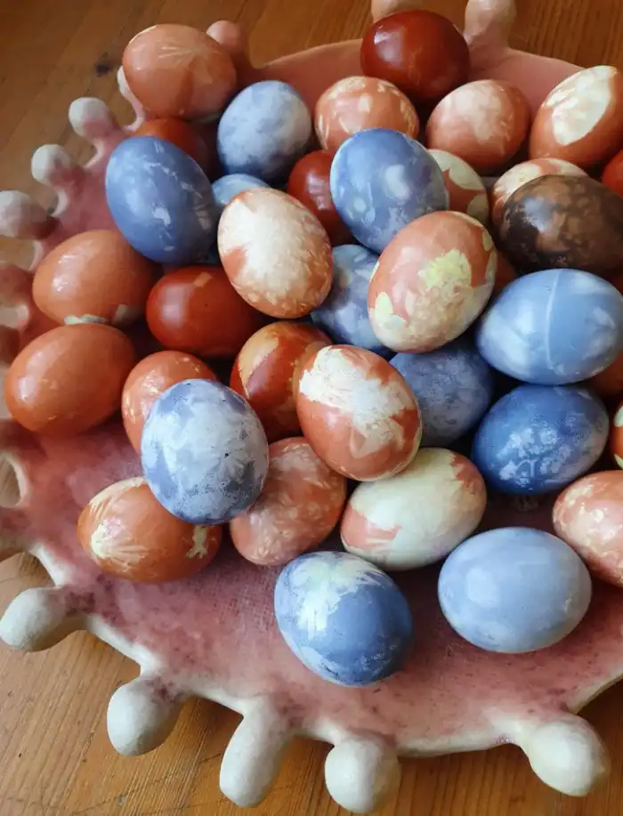 12. "Яйца, окрашенные луковой шелухой и красной капустой"