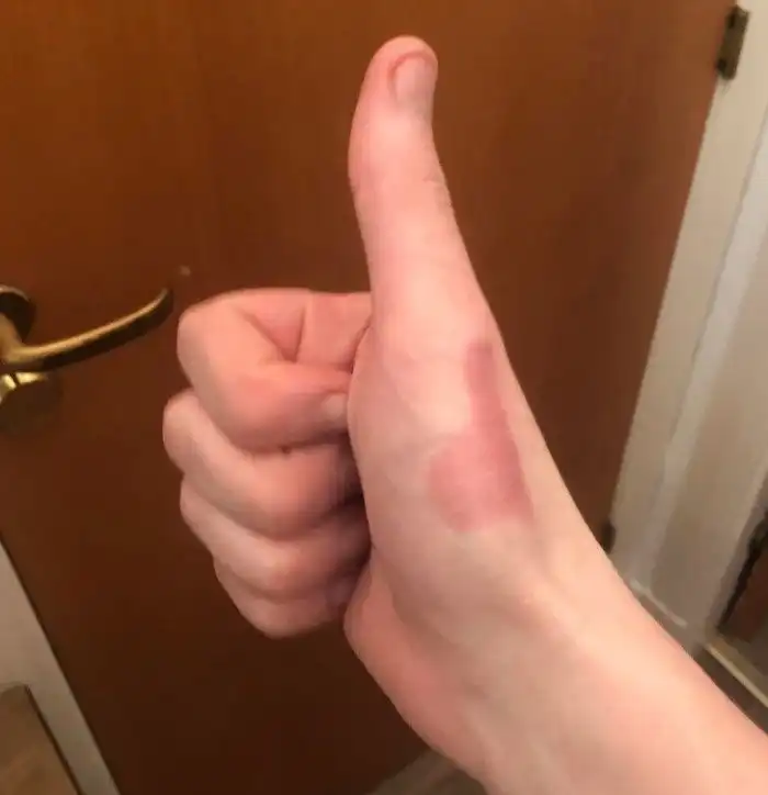 1. "Обнаружила, что мой зубной имплант не светится в ультрафиолете, в отличие от остальных зубов. Обычное фото для сравнения"