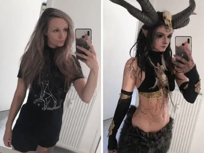 Девушка продемонстрировала себя до и после примерки образа по игре «Diablo»