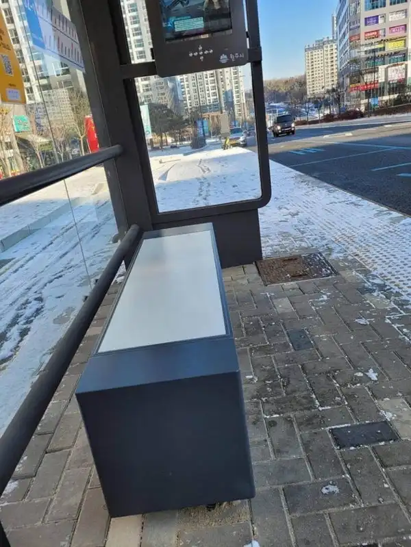 Для полноценного комфорта пассажиров общественного транспорта на остановках имеются скамейки с подогревом.