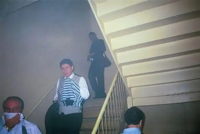 18. Люди эвакуируются из ВТЦ, после того как второй самолёт врезался в здание. 11 сентября 2001 год