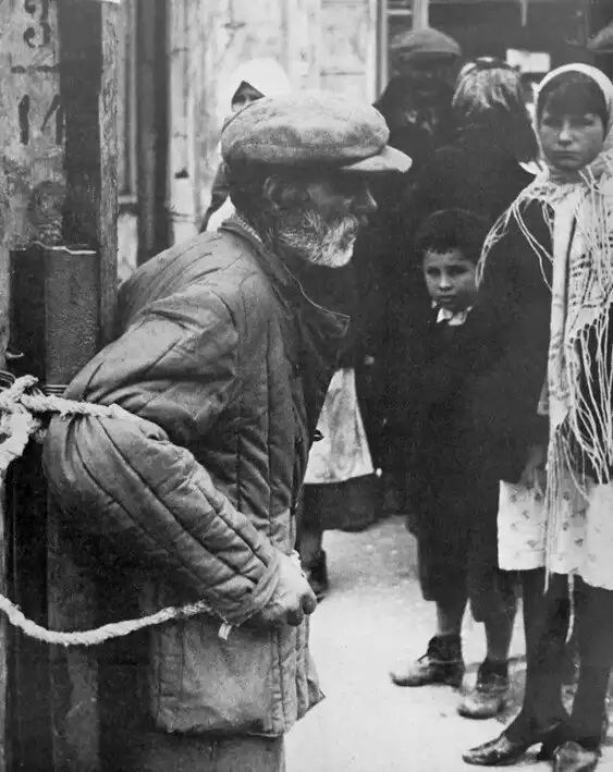 22. Мужчина, привязанный немецкими солдатами за кражу к столбу на улице оккупированного города. УССР, Август 1941 год