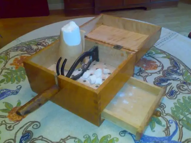 Не многие вспомнят, что раньше сахар производился в форме конуса, так называемой сахарной головы, и для разламывания его на мелкие куски использовали специальные кусачки либо вот такой чудо-ящик.