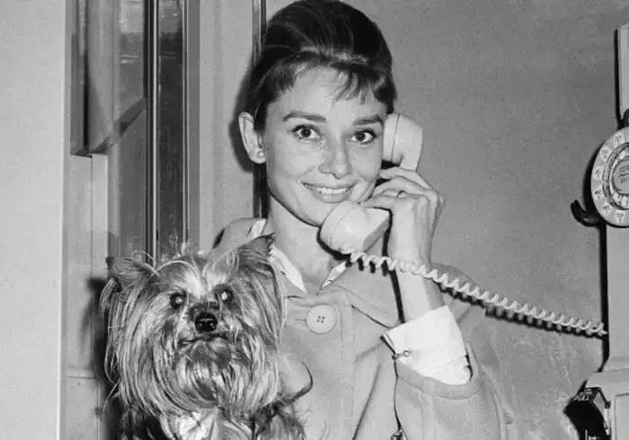 Одри Хепберн и её Мистер Знаменитость. К слову, именно эта актриса ввела моду на йоркширских терьеров, как домашних питомцев в 60-х годах прошлого столетия.
