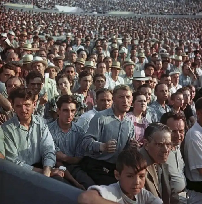 Болельщики на столичном стадионе "Динамо" в 1956 году.