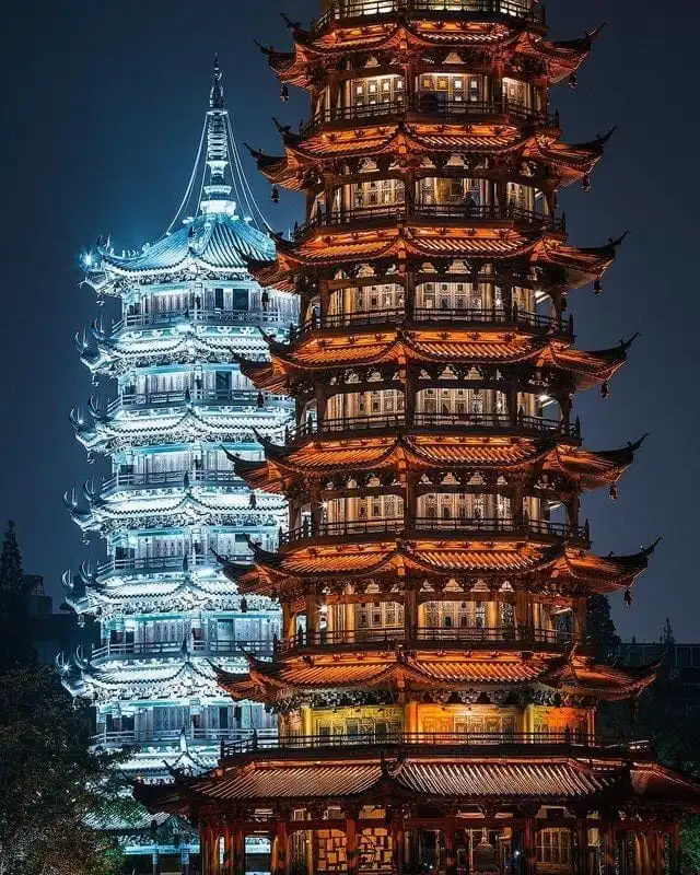 Пагоды Солнца и Луны в городе Гуйлинь, Китай