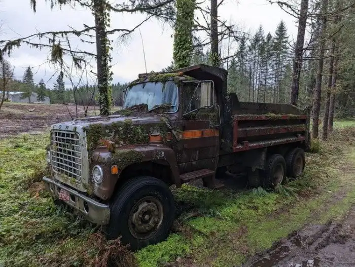 Грузовик, который постепенно принимает в свои объятия густой мох