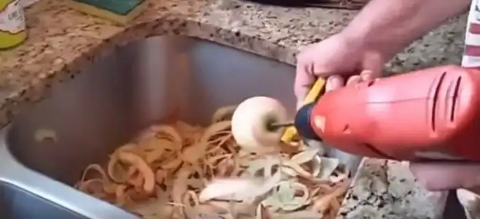 10. Если нужно почистить много яблок, то лучше всего использовать дрель и перьевой сверло (широкое)