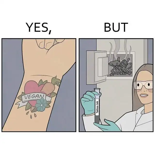 Когда делаешь татуировку, гордясь, что ты веган, не очень приятно потом узнать, что при производстве чернил пострадали животные