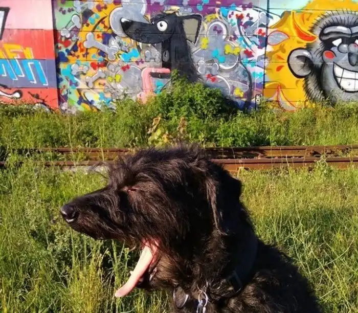 1. "Моя собака зевнула точно в тот момент, когда я сфотографировал ее на фоне граффити с собакой, похожей на нее"