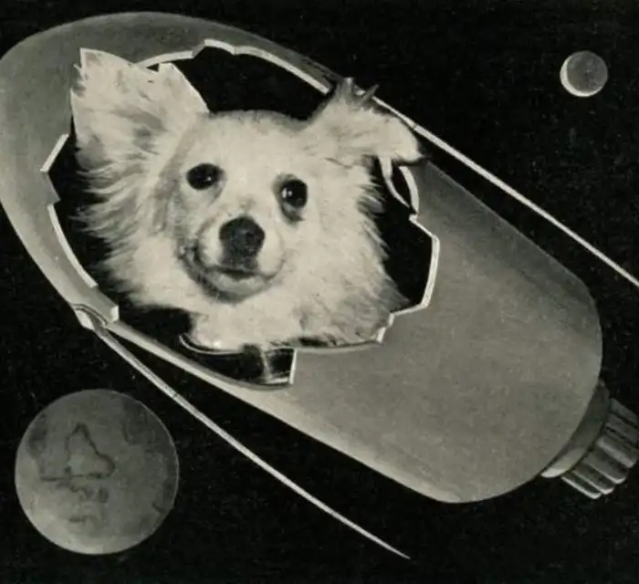 Космическая собака Козявка, 1960 год, итальянская открытка.