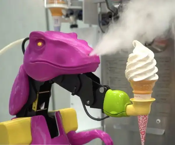 В японских кафе-мороженых посетителей обслуживают роботы. Они «оживают», когда покупатель прикладывает к прилавку QR-код, полученный после оплаты