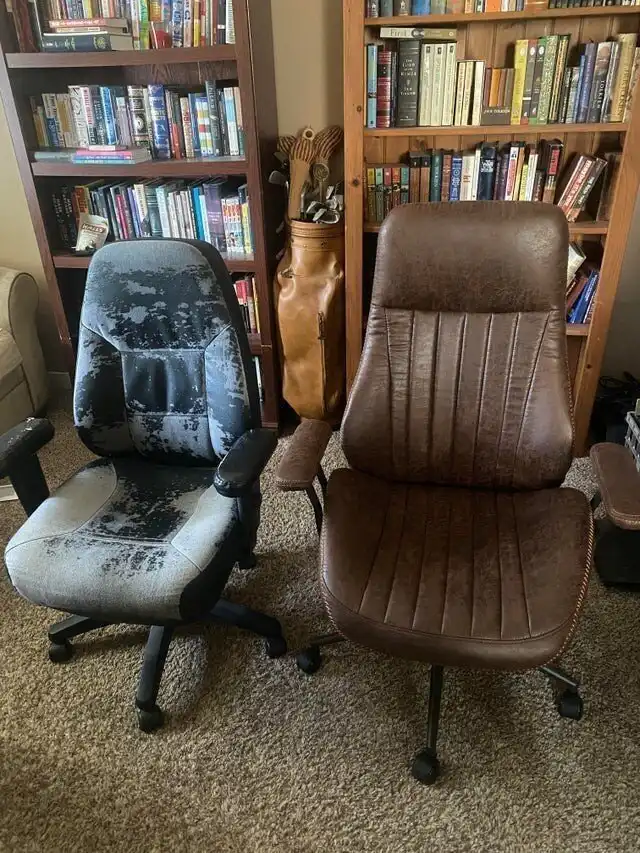 Стул на котором я сидел каждый день с 2010 года, и моё новое кресло